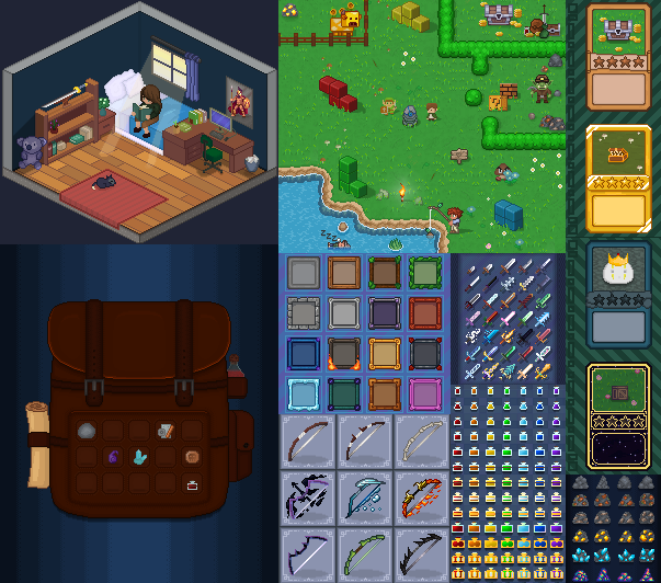 I design characters, tilesets, animations, UI elements, and complete asset packs made for indie developers, hobby projects, and game jams.
